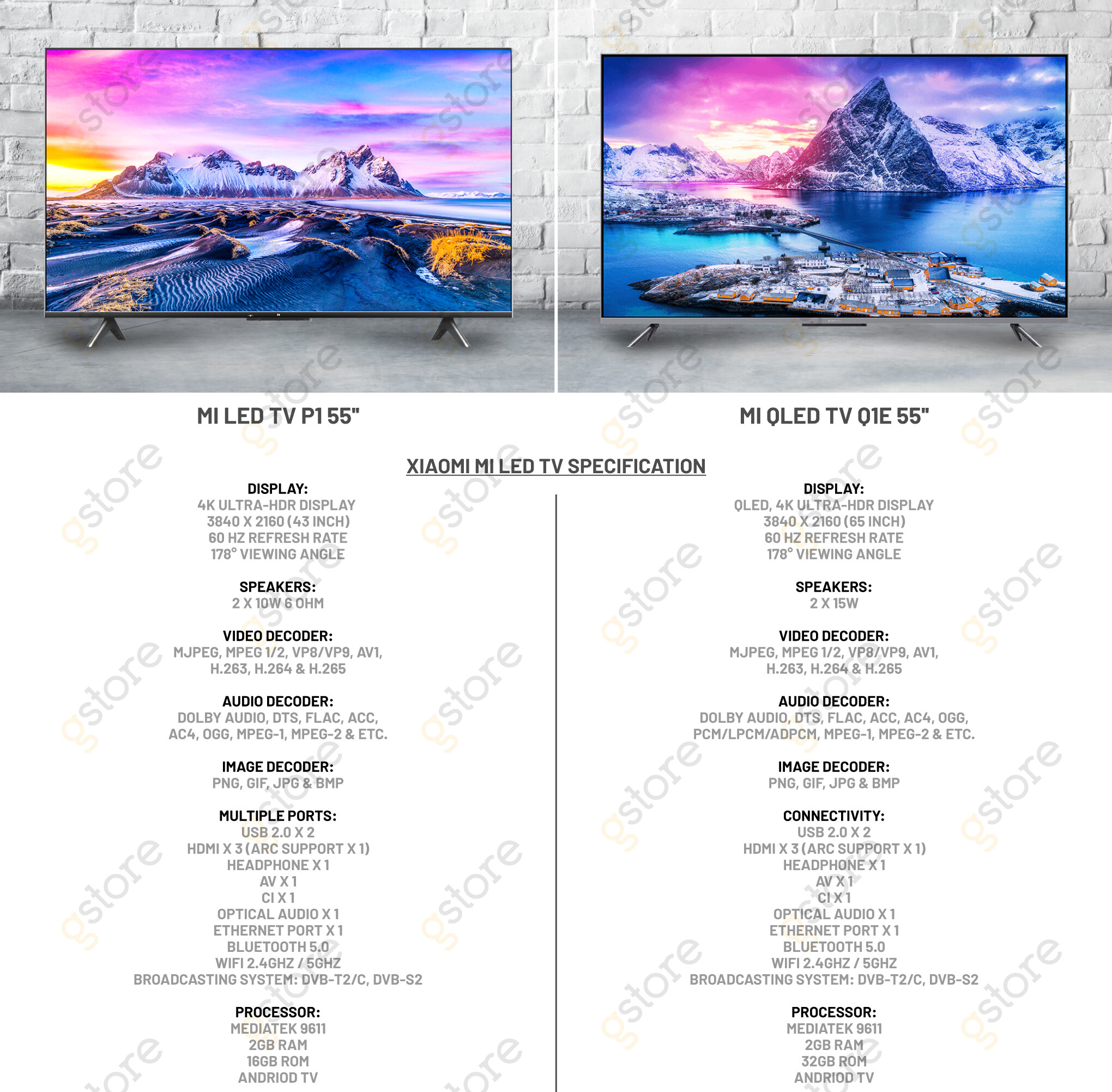 [FREE SHIPPING] Xiaomi Mi LED TV P1 55" 4K UHD | Xiaomi TV Q1E 55" QLED 4K UHD [Netflix/Youtube/Google Service/Google Play/Google Assistant] Android Smart TV with 1 Year Warranty