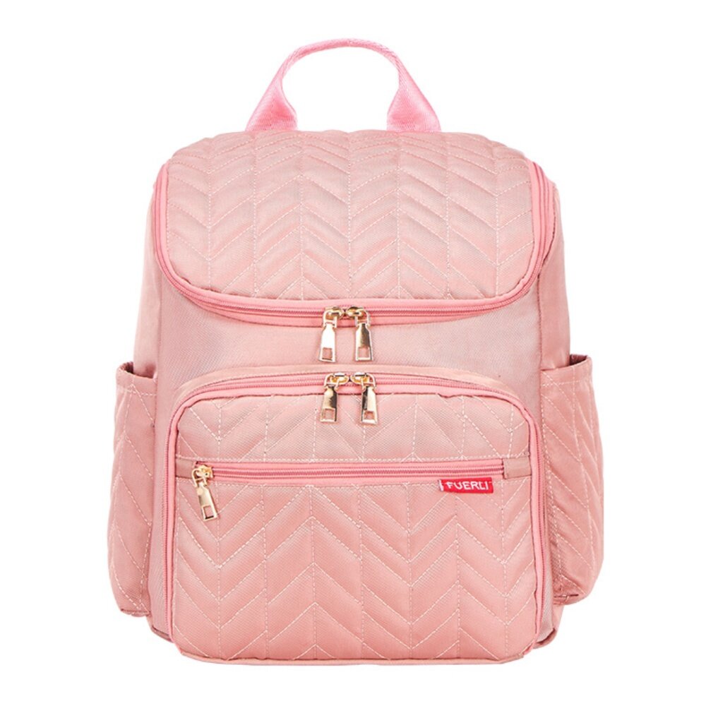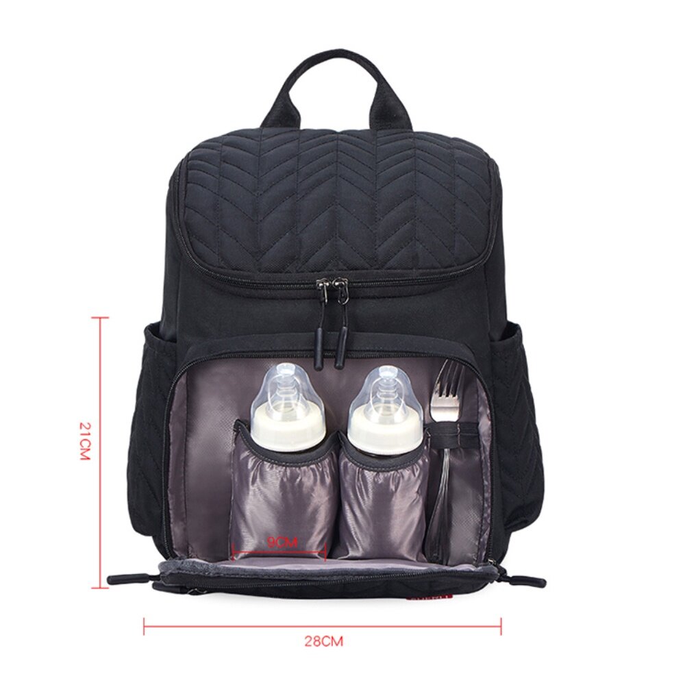 In regard to this mummy bag,it's stylish,luxurious,Amazing and it have a large capacity space.And you can carry a lot of baby things,like diaper pad,feeding-bottle,baby toys and so on.