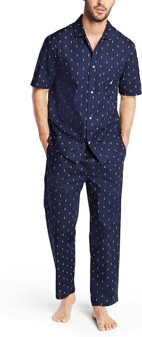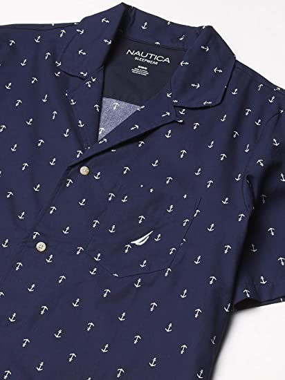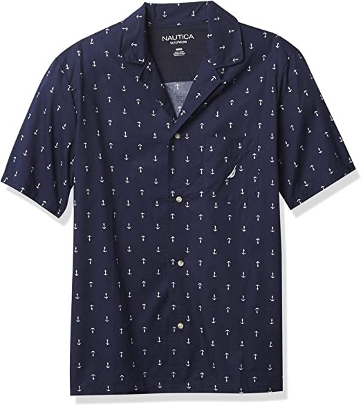 Nautica Men's Short Sleeve 100% Cotton Soft Woven Button Down Pajama Top