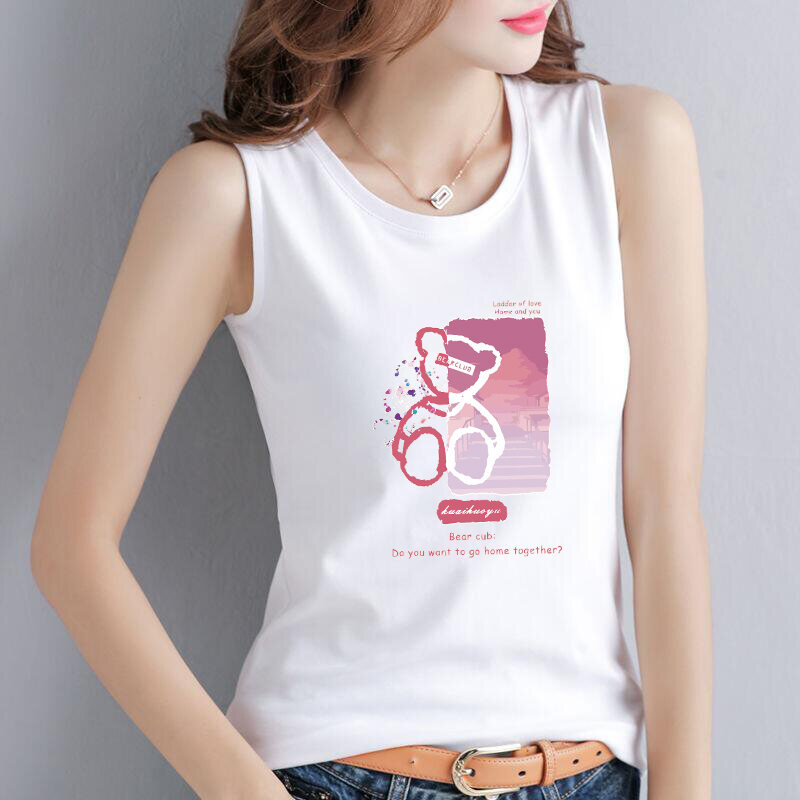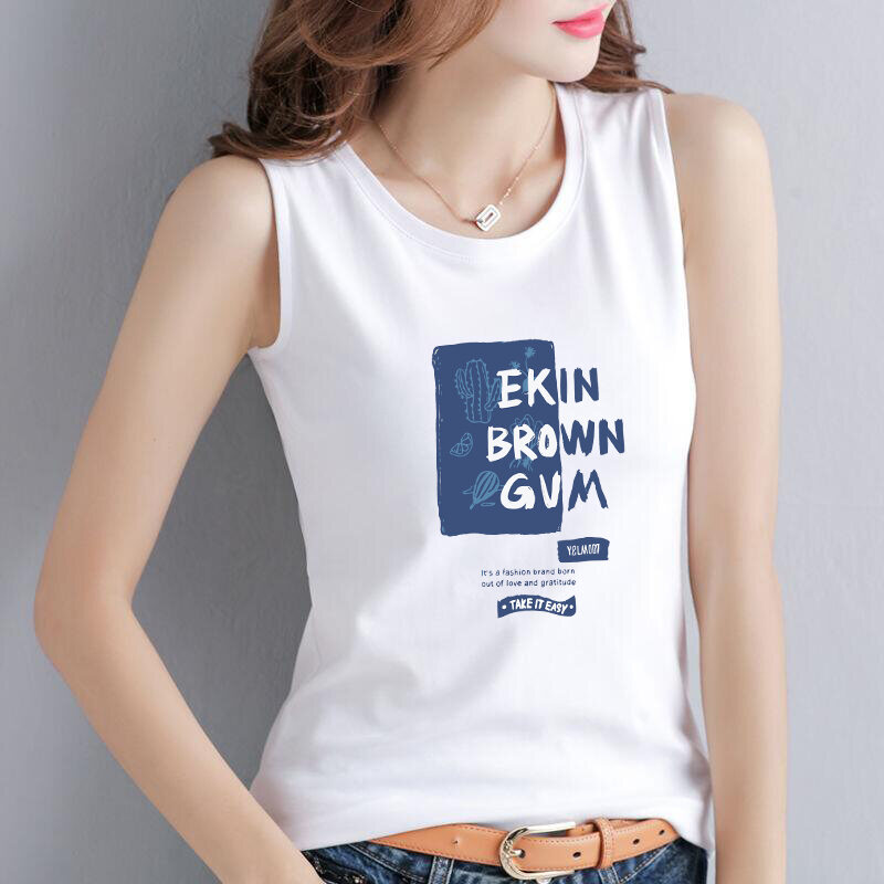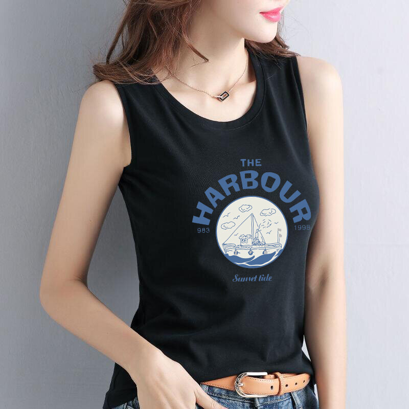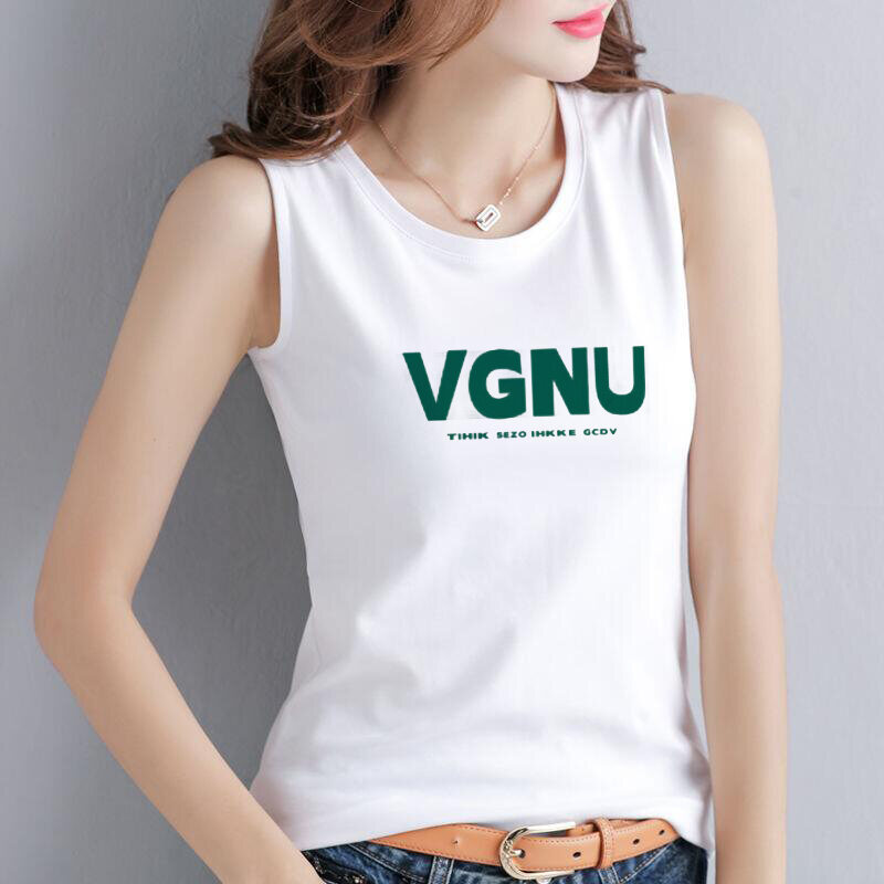 Pure Cotton Summer Sleeveless Vest Women's Anti-Light Loose Fit Base Layer Open-Back Tank Top Printed Fashion Element