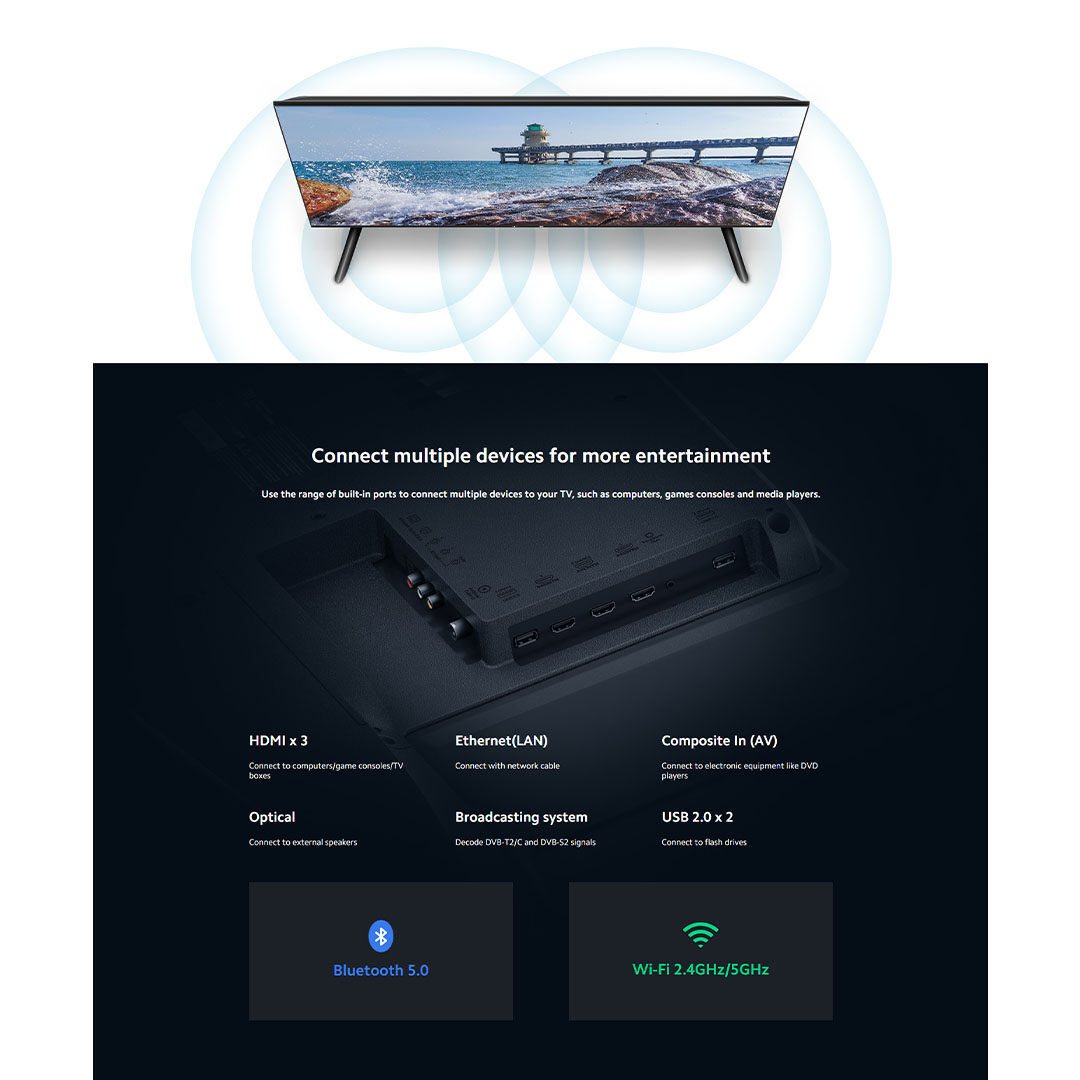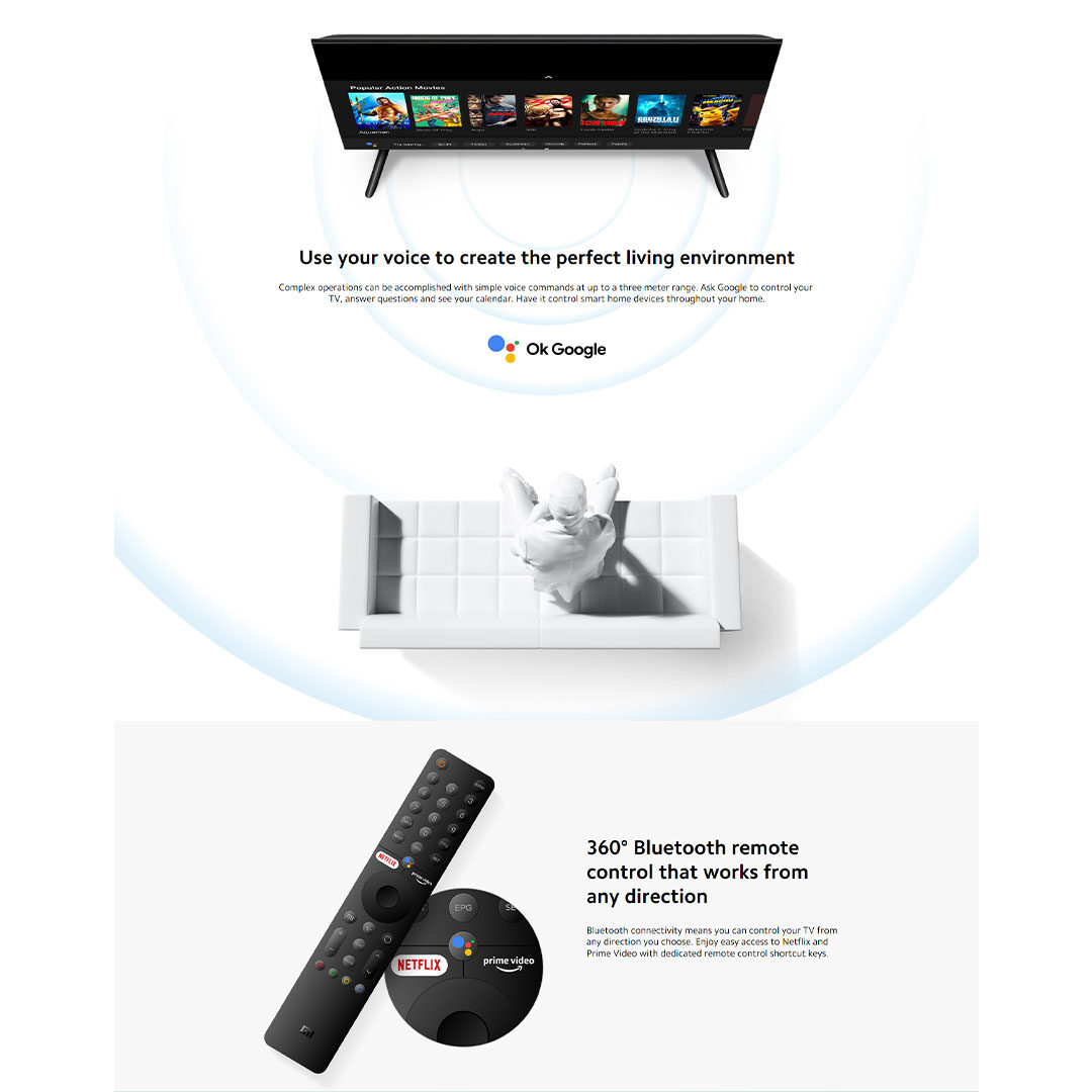 XIAOMI 43" 4K UHD Andriod TV MI 43" TV P1 Series | Google Assistant | Smart Home Control Hub | Dolby Audio | Quad-Core Processor | Bluetooth 4.2 | Android 9.0 | USB | HDMI | Wi-Fi 2.4GHz | Android TV
